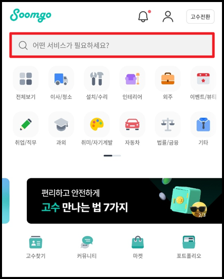 여기서 말하는 숨고(숨은 고수)라는 앱은 다양한 서비스 전문가와 소비자를 연결해 주는 플랫폼입니다. 사용자는 필요한 서비스를 요청하고, 전문가들은 그에 맞춰 견적을 제안하는 방식으로 운영됩니다. 이 앱은 청소, 인테리어, 운동, 과외 등 다양한 분야의 전문가를 찾는 데 유용하며, 전문적인 회사에 문의하여 견적을 받는 것보다는 조금 더 가성비 있게 서비스를 받을 수 있다는 장점이 있습니다.